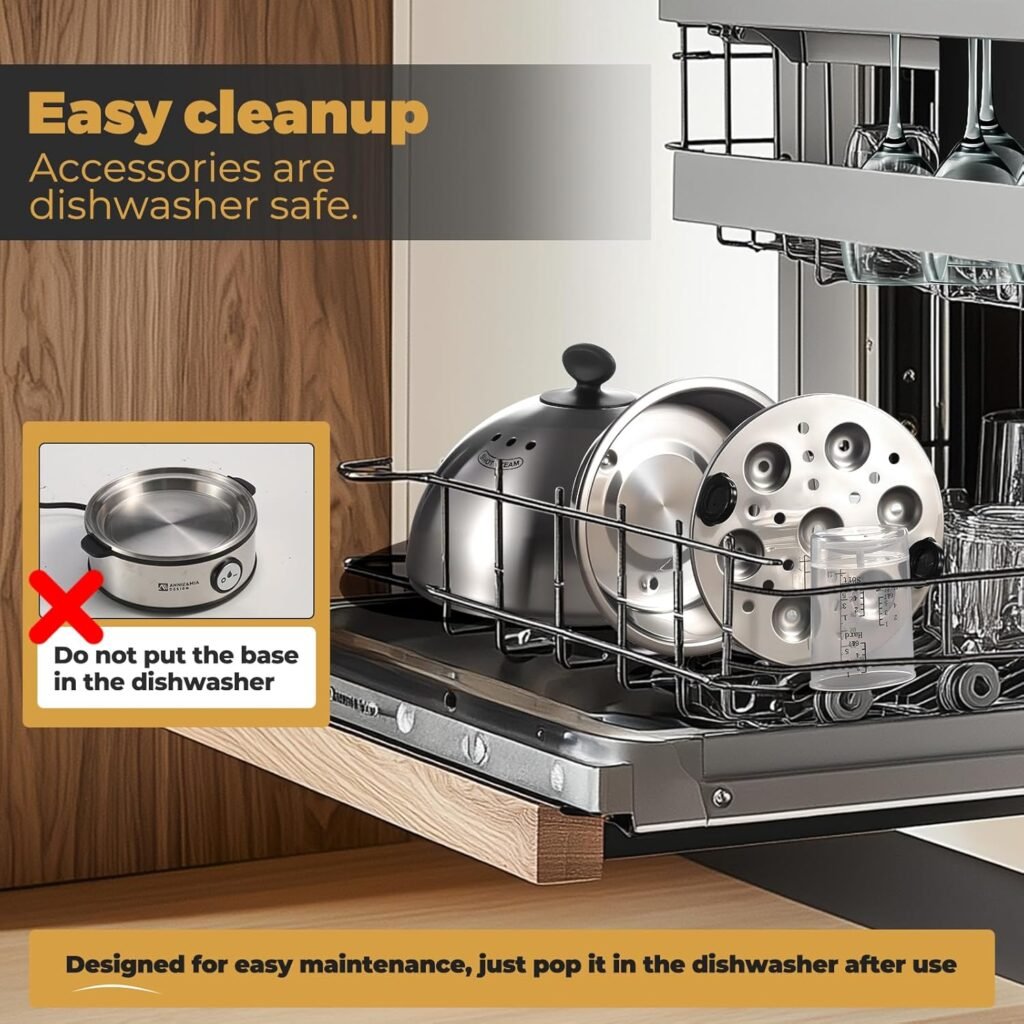 - PURE STAINLESS STEEL INSIDE & OUT: Lid, egg tray, poaching/omelet bowl, and heating plate are food-grade 304 steel, so n…